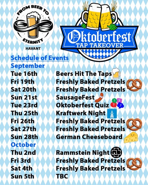 Introducing From Beer To Eternity's first Oktoberfest: our biggest event yet! Featuring German beers, food, music, costumes and more between 16th September and 12th October. The pub is getting a full German makeover so why not pop in and see what we've done with the place, no booking required and free entry! Prost!